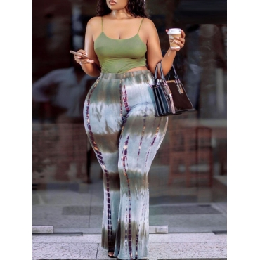 Lovely Street U Neck Tie-dye Grey Plus Size Two-piece Pants Set