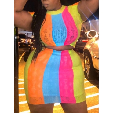 Lovely Casual Mesh Striped Patchwork Multicolor Plus Size Two-piece Skirt Set