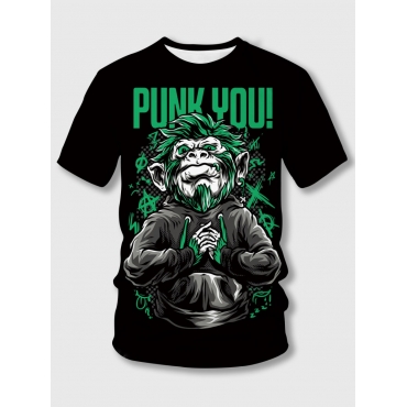 Lovely Casual O Neck Animal Letter Print Black Men T-shirt