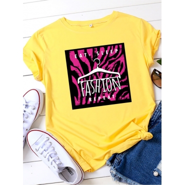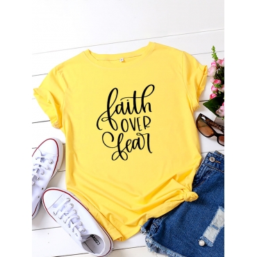 Lovely Casual O Neck Letter Print Yellow Plus Size T-shirt