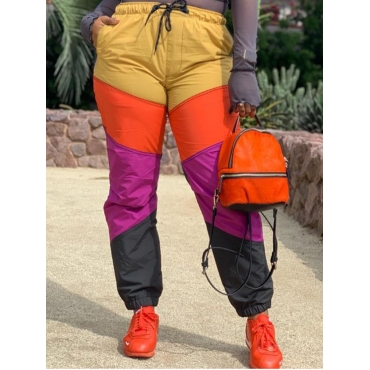 Lovely Polyester Street Color Block Split joint Loose Mid Elastic Waist Yes(Elastic) Stitching Way Pants