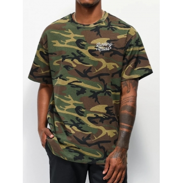 Lovely Casual O Neck Camo Letter Print Men T-shirt
