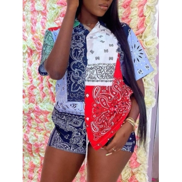 Lovely Ethnic Paisley Print Patchwork Red Blouse(No-positioning Printing)