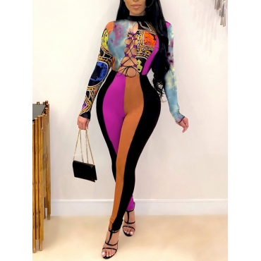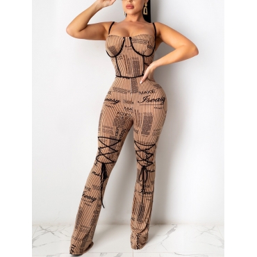 Lovely Chic Letter Print Bandage Design Brown One-piece Jumpsuit