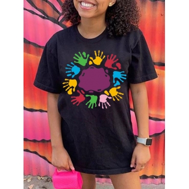 Lovely Casual Palm Print Patchwork Black T-shirt