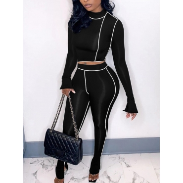 Lovely Trendy O Neck Striped Black Two Piece Pants Set