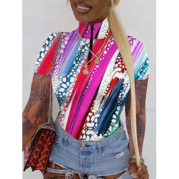 Lovely Casual Mandarin Collar Print Patchwork Pink T-shirt