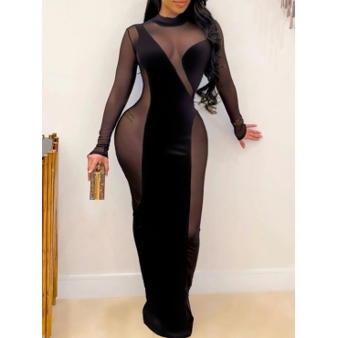 Lovely Sexy O Neck See-through Black Floor Length Dress