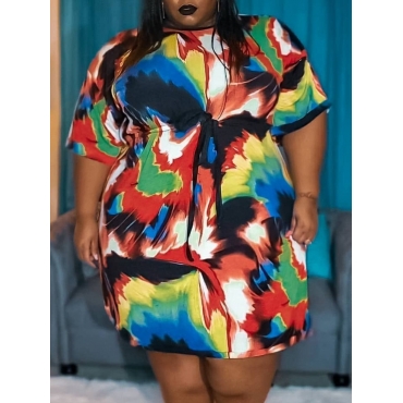 Lovely Casual Tie-dye Patchwork Multicolor Knee Length Plus Size Dress