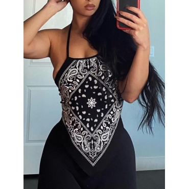Lovely Casual Paisley Print Asymmetrical Black Camisole