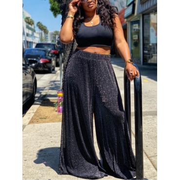 Lovely Casual U Neck Sequined Flared Black Two Piece Pants Set