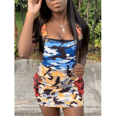 Lovely Street Camo Print Side Pocket Multicolor Mini Dress