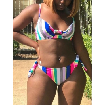 Lovely Casual Striped Bandage Design Multicolor Two-piece Swimsuit