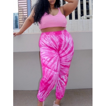 Lovely Casual Mid Waist Tie-dye Pink Plus Size Pants