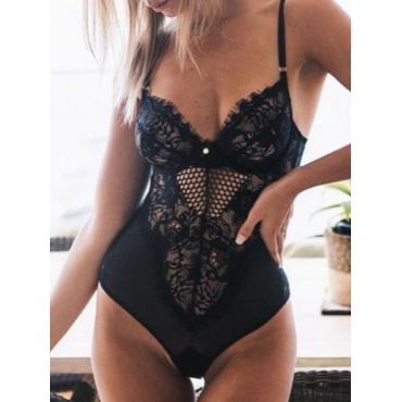 Lovely Sexy Mesh Hollow-out Black Teddies