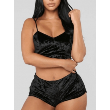 Lovely Sweet V Neck Basic Skinny Black Bra Set