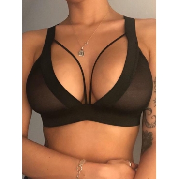 Lovely Sexy Bandage Hollow-out Design Black Bra Set