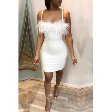 Lovely Sexy Spaghetti Straps Patchwork White Mini Dress