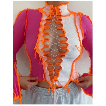 Lovely Stylish Bandage Design Patchwork Rose Red T-shirt