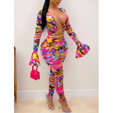 Lovely Sexy Cross-over Design Print Multioclor One-piece Jumpsuit