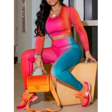 Lovely Trendy O Neck Tie Dye Multicolor Two Piece Pants Set