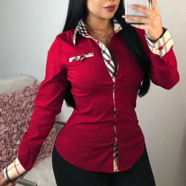 Lovely Casual Patchwork Bright Red Cotton Shirts