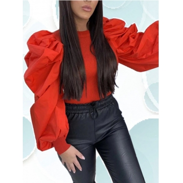 Lovely Street O Neck Patchwork Red Blouse