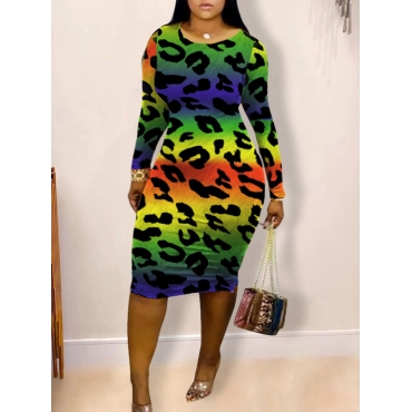 Lovely Casual O Neck Print Multicolor Knee Length Plus Size Dress