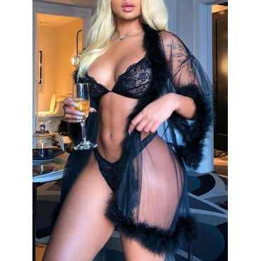 Lovely Sexy See-through Black Sleepwear(Without Bra Sets)
