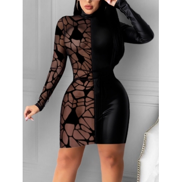 Lovely Sexy Geometric See-through Black Knee Length Dress