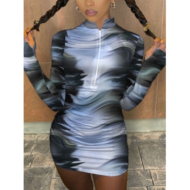 Lovely Trendy Gradient Zipper Design Black Knee Length Dress
