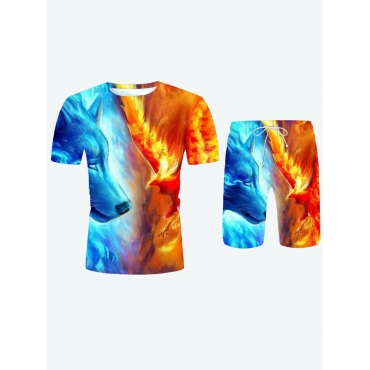 Lovely Casual Animal Print Patchwork Multicolor Men Two Piece Shorts Set