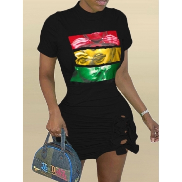 Lovely Street O Neck Graffiti Print Hollow-out Black Mini Dress
