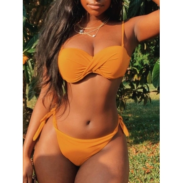 Lovely Casual Bandage Design Cross-over Yellow Two-piece Swimsuit