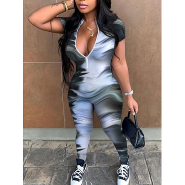 Lovely Trendy Gradient Zipper Design Black One-piece Jumpsuit