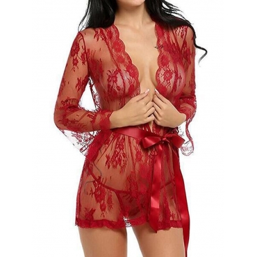 Lovely Sexy Backless See-through Bandage Design Red Babydoll