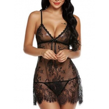 Lovely Sexy Backless See-through Bow-tie Decoration Black Babydoll