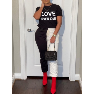 Lovely Trendy Letter Print Drawstring White Two Piece Pants Set