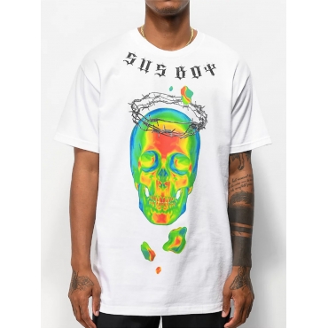 Lovely Casual O Neck Skeleton Print White Men T-shirt
