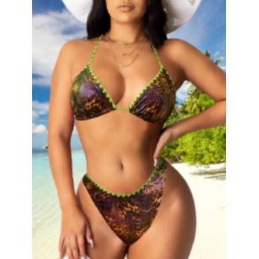 Lovely Casual Leopard Print Patchwork Multicolor Two-piece Swimsuit