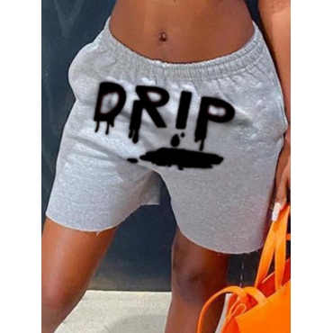 Lovely Sportswear Mid Waist Letter Print Grey Shorts