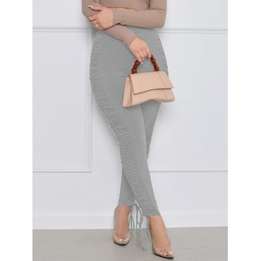 Lovely Casual Mid Waist Fold Design Drawstring Skinny Grey Pants