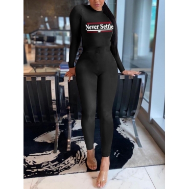 Lovely Sportswear O Neck Letter Print Black One-piece Jumpsuit
