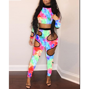 Lovely Casual Tie-dye Hollow-out Multicolor Plus Size Two-piece Pants Set