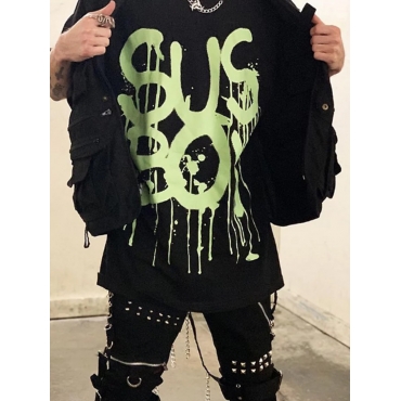Lovely Chic O Neck Letter Graffiti Print Black Men T-shirt