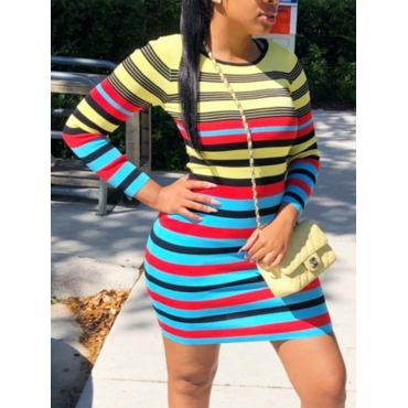 Lovely Casual Striped Patchwork Yellow Knee Length Dress