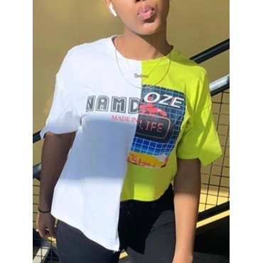 Lovely Casual O Neck Letter Print Patchwork White T-shirt