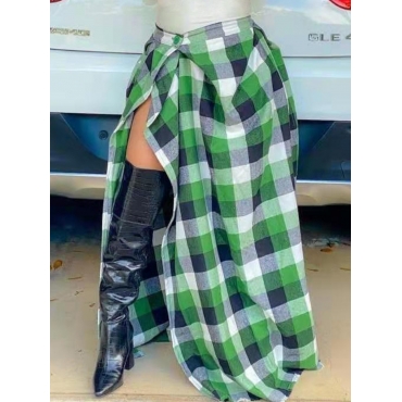 Lovely Casual Plaid Print Split Green Ankle Length Skirt