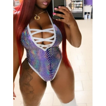 Lovely Casual Color-lump Patchwork Hollow-out Multicolor One-piece Swimsuit