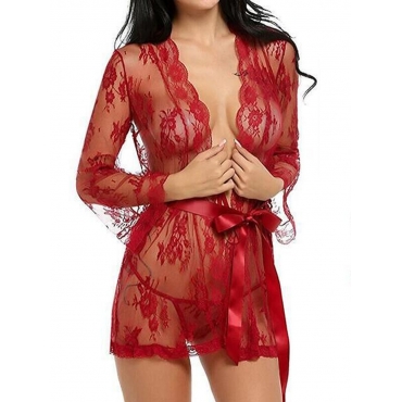 Lovely Sexy See-through Bow-tie Decoration Red Babydoll